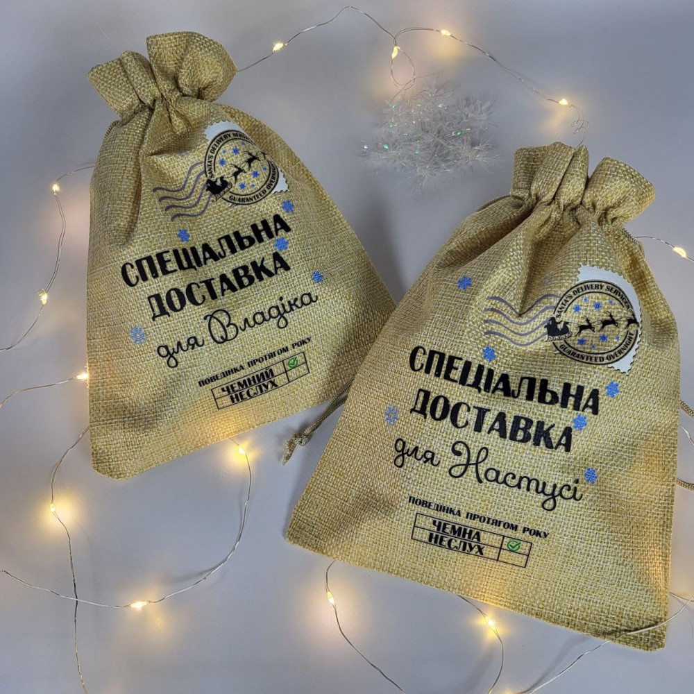 Додайте у свій подарунок частинку свого тепла та вашої турботи, потіште своїх близьких. Замовляйте іменний мішечок, який стане найкращим новорічним сюрпризом і ви побачите їх щасливі очі.