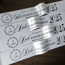 Пропонуємо купити стрічки для випускного 2026 у більше ніж 10 кольорах стрічки з різними кольорами надпису. В своїй роботі ми використовуємо професійне обладнання та преміальні матеріали, завдяки чому ваш клас буде найгарнішим.
