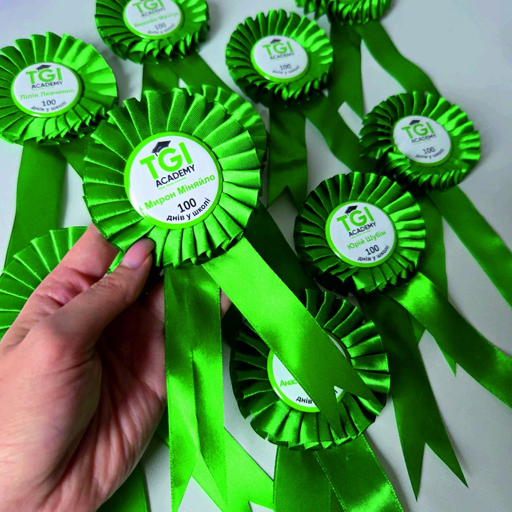Значки першокласник з зеленою розеткою